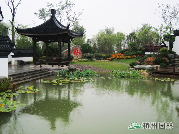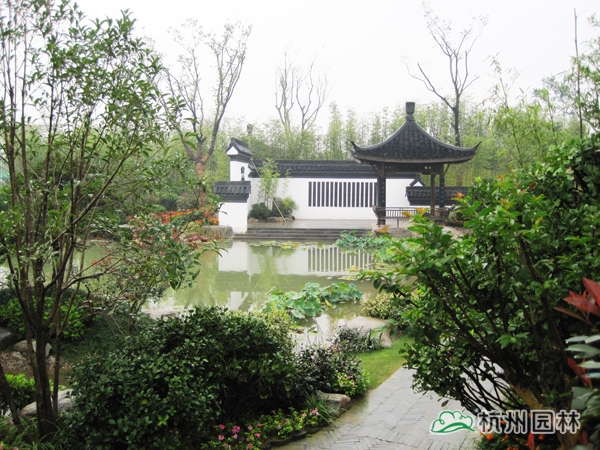 第二屆中國綠化博覽會之杭州園,又名“緣園”。以西湖美麗的傳說《白蛇傳》為設(shè)計脈絡(luò),將故事提煉成斷橋相逢、同心定緣、平湖秋月、雷峰夕照四個精華部分,融入到工程綠化作品中,運用多桿叢生植物和木本花境為造景元素,平臺、小橋、埠頭、沙灘、景石,勾勒水鄉(xiāng)風韻;粉墻、黛瓦、圓門、方亭、水榭,追憶江南情懷,由此達到了景中有情、情中有景,用園林綠化的丹青妙筆描繪出一幅情景交融的江南風情畫卷。漫步緣園,仿佛回到千年前的西湖:風景如畫、才子佳人、江南煙雨、風光旖旎,斷橋之上,許仙與白娘子洋溢纏綿悱惻的浪漫愛情傳奇……