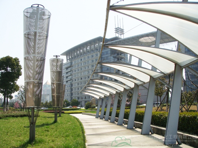 海寧市海洲廣場北區(qū)Ⅱ標段(綠化工程)位于海寧市行政中心內,區(qū)域范圍由海洲路、高家橋河、丁橋港一路兩河圍成,綠化用地123000平方米。該工程為綜合性園林工程,分為17個分部,包括園路、林蔭停車場、人文廣場、林蔭廣場、親水平臺、浮雕、噴泉、景觀亭、景觀廊、休息廊、網(wǎng)球場、小方塊道路、假山、園形花廊、鋪裝停車場、綠化工程、給排水工程及電氣安裝等。