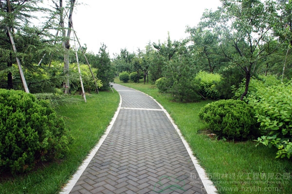 山東壽光市東環(huán)路東側(cè)綠化改造工程(圣城街-北環(huán)路)面積9萬平方米,施工范圍為機動車道與非機動車道之間2.5米的隔離綠化帶和30多米寬的路側(cè)綠化帶,施工內(nèi)容包括土方地形整理、綠化種植、園路鋪裝、景石擺放、景觀小品營建等。2009年9月開工,2010年7月竣工。經(jīng)過2年的精心養(yǎng)護,如今,這里樹木蔥郁,花草繁茂,一路走來,隨著多種風格的園路在腳下延伸,風景也在眼前不斷變化。