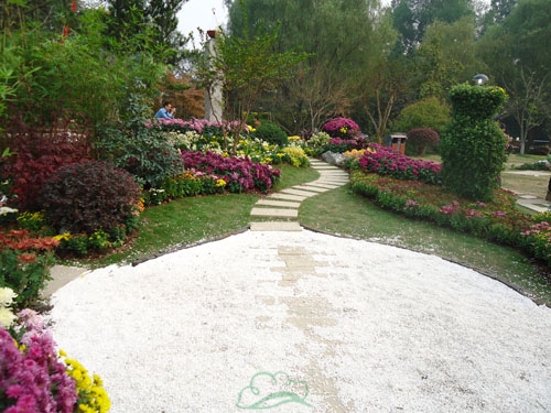 綠廬,第五屆中國菊花精品展暨杭州第三屆菊花藝術(shù)節(jié)參展作品。它通過多種手法的綜合應(yīng)用,營造出了一個寧靜、祥和、遠離塵囂而又不失色彩的鄰家后花園。紅樓青瓦猶在,綠樹紅花長盛,出門即是水,河畔亦有山,臨水而居,靠山而行。山上亭臺不少,鮮花繁多,少有香味,但卻常見蝴蝶縈繞。小徑通幽,移步換景,人工雕琢,自然風(fēng)韻。林幽草茂,倒充滿生活氣息,如是一個花園,讓人寧靜,亦讓人常有頓悟。此中也只有淡雅的菊者,才與之絕配。一個遍地植菊的庭院,一幅自然而韻味十足的菊花景觀,人行其中,步伐、氣息、身影交錯,與景觀和諧地融為一體,不但展現(xiàn)出城市生活中人們努力追求或回憶的一種起居文化,更是人生和、淡、清、雅的一種精準體現(xiàn)。這樣一個有著幽靜田園般意境的庭院景觀,受到了眾多參觀者的好評,成為菊花展上一道美麗的風(fēng)景。榮獲第五屆中國菊花精品展暨杭州第三屆菊花藝術(shù)節(jié)銀獎。
