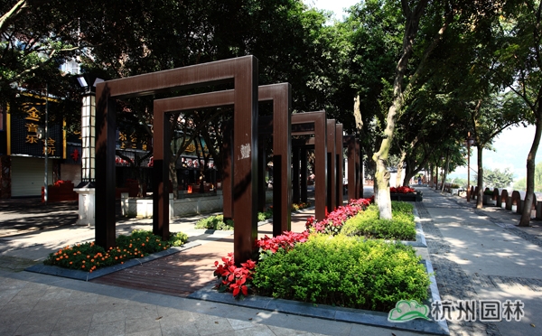 該工程起于濱江路孝順路口,止于國窖長江大橋,是瀘州市“兩江四岸”規(guī)劃建設(shè)的示范性工程。工程的設(shè)計(jì)不僅體現(xiàn)出了自然與生態(tài)融于一體的園林理念,注重對原生態(tài)環(huán)境的保護(hù),節(jié)能環(huán)保材料的應(yīng)用及后期養(yǎng)護(hù)的簡單方便等,更重要的,將瀘州深厚的歷史文化元素融入其中,讓人們在欣賞現(xiàn)代美景的同時(shí),可以穿過歷史的塵煙,記住這座城市的一路變遷,品味時(shí)光的流轉(zhuǎn)。一處地標(biāo)式的城市景觀,將“醉美瀘州”展現(xiàn)得琳漓盡致。