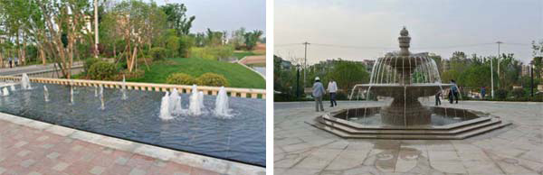 受中國(guó)傳統(tǒng)文化的影響,中國(guó)人喜歡靜觀或觀靜,現(xiàn)代小區(qū)水景設(shè)計(jì)一方面可以滿足人們對(duì)居住環(huán)境安靜舒適的需求,另一方面通過(guò)適宜小區(qū)環(huán)境尺度的噴泉、涌泉、疊泉等動(dòng)水,增加小區(qū)環(huán)境的生氣及靈動(dòng)性,給人們以感觀的刺激,用水的動(dòng)態(tài)之美與水聲之美讓身處鬧市之郊的居民體會(huì)“山水有清音”的意境與自然美景。