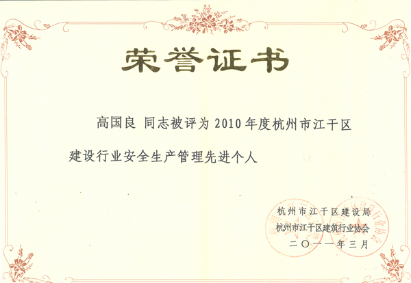 會議旨在總結(jié)經(jīng)驗(yàn),表彰先進(jìn),現(xiàn)場宣讀了一批在2010年為江干區(qū)經(jīng)濟(jì)發(fā)展做出突出貢獻(xiàn)的建筑企業(yè)和個人名單,并頒發(fā)了獎牌和證書。其中,公司被評為“2010年度杭州市江干區(qū)城市園林綠化優(yōu)秀企業(yè)”,成為上榜的七家企業(yè)之一;公司工程總監(jiān)、市政分公司副總經(jīng)理高國良被評為“2010年度杭州市江干區(qū)建筑行業(yè)安全生產(chǎn)管理先進(jìn)個人”。