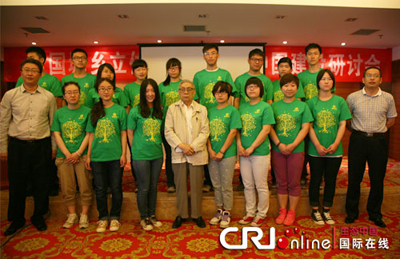兩院院士、原建設(shè)部副部長周干峙與美麗獎校園大使集體合影。