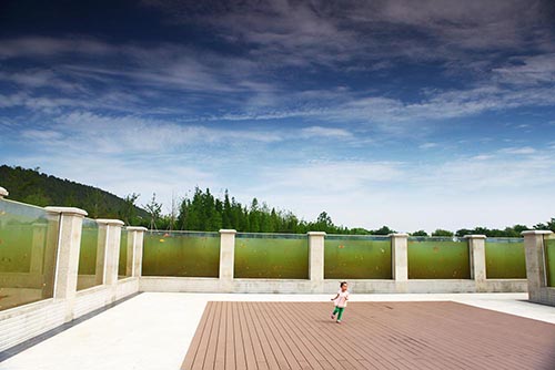 天師廣場:和天師嶺、創(chuàng)教路、鶴鳴臺等景點(diǎn)一起,集中展示張道陵天師歷經(jīng)得道、修煉、斗法、立教、升天,羽化成仙的過程,再現(xiàn)張?zhí)鞄煹男薜乐啊V場呈半圓形,設(shè)有特色鋪裝、臺階花壇、觀景錯(cuò)層平臺等硬性設(shè)施,觀景平臺與水上世界自然融為一體,伴著徐徐微風(fēng),云龍湖的美景盡收眼底。