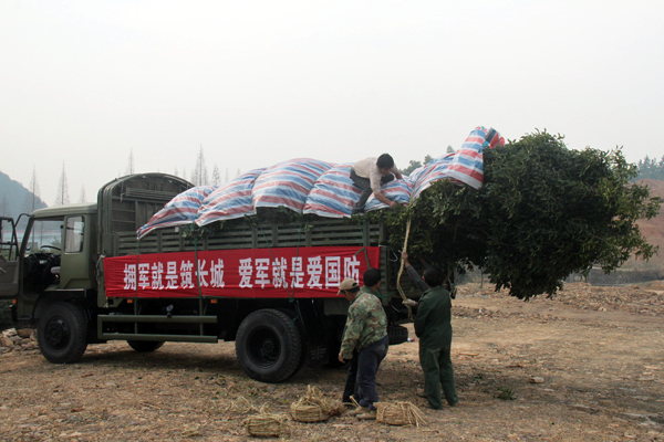 為給官兵營建綠色的生活環(huán)境,杭州市政府從杭州市園林綠化工程有限公司位于臨安泉口的苗木基地選購了一批桂花樹送給駐舟山部隊。據(jù)悉,此次選購的桂花為蓬徑1.8米至3.5米的大苗,品種有四季桂、硬葉丹桂、波葉金桂等。同時,該公司還派出了專業(yè)技術(shù)人員前往舟山指導(dǎo)種植工作。