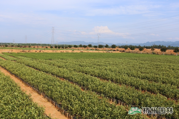 金華文廣苗木場位于浙江金華蔣堂鎮(zhèn),面積1000畝,十五年專業(yè)種植、繁育、經(jīng)營各種綠化苗木。基地中的桂花品種繁多,有金桂、銀桂、丹桂、四季桂、金球桂、狀元紅等,這些桂花蓬形密、長勢壯、造型好,冠伏在2米至5米的就達(dá)20萬株。香樟、杜英、無患子、紅玉蘭、紅葉石楠球等也達(dá)200畝。最吸引大家眼球的是基地中一排排排列整齊的寶塔形桂花樹,樹形獨(dú)特,長勢喜人。隨著市場的不斷變化,文廣苗木場不斷創(chuàng)新求變,通過修剪造型,培養(yǎng)出了寶塔形桂花,因此桂花銷量一直維持在較高水平。