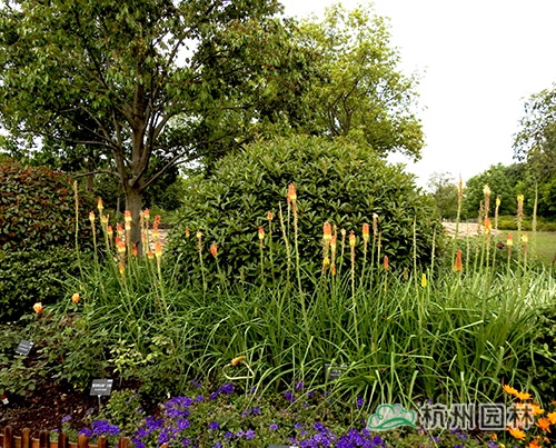 火炬花葉長至二三十厘米即開始下垂,但其花序長可達80-100cm,在花境中常用作焦點或背景材料。