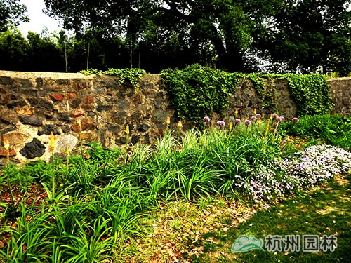 火炬花與地錦球形成墻垣花境的獨特風(fēng)景。