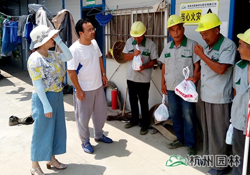 7月20日至28日,杭州市園林綠化股份有限公司的夏季高溫防暑慰問工作也陸續(xù)進行,工會領(lǐng)導(dǎo)和各有關(guān)部門負責人帶著防暑降溫物品,奔赴各大在建項目工地,為一線施工人員帶去全體員工的關(guān)心和慰問。