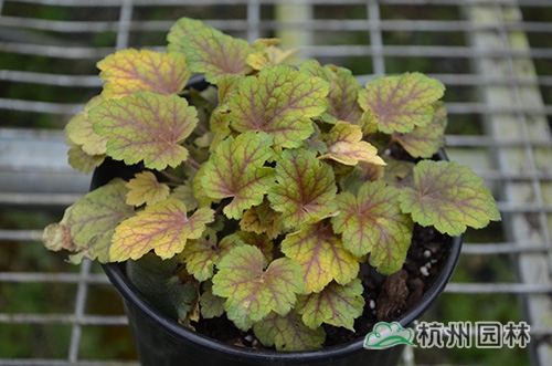 礬根Heuchera micrantha,虎耳草科礬根屬,多年生耐寒草本花卉,原產(chǎn)于美國(guó)中部,是少有的彩葉陰生地被植物,被廣泛應(yīng)用于美國(guó)園林景觀中。近年來(lái),在國(guó)內(nèi),作為新優(yōu)地被植物,礬根因其美麗的葉色和獨(dú)特的葉形,良好的觀賞性和景觀效果,成為熱門(mén)園林植物之一,有著廣闊的應(yīng)用前景。