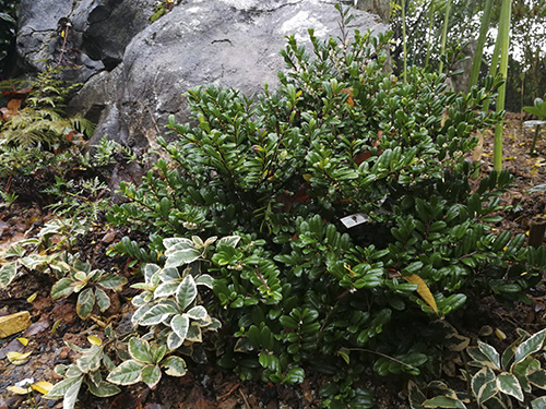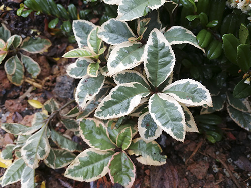 為日本引進(jìn)品種,常綠地被灌木,植株低矮,帶有奶白色花邊,適合用于寄植和陰生花園營造,在半陰通風(fēng)濕潤不積水的戶外環(huán)境栽培比較合適,陽臺(tái)盆栽皆可。