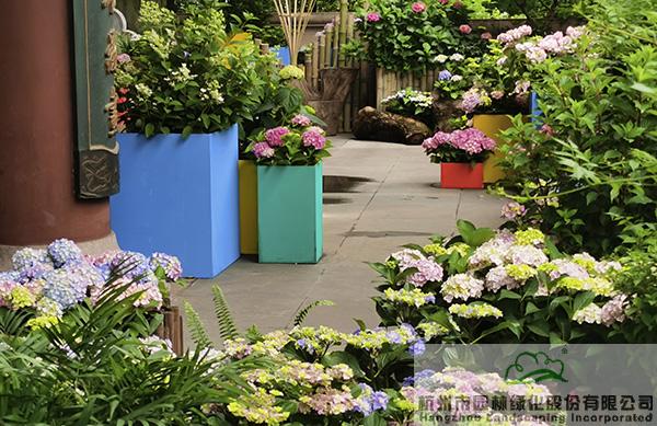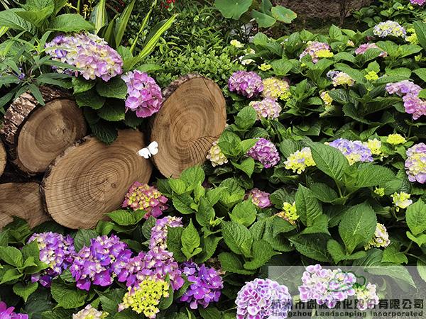 在城隍閣二樓平臺,杭園股份贊助的50余個品種、近400余盆的繡球花也將驚艷亮相,通過豐富的造景方式,充分展現(xiàn)繡球花的魅力。不管是種植在色彩明艷的花箱中,還是與枯木、竹籬笆、瓦片等的搭配,繡球都展現(xiàn)出絕美的風(fēng)姿,吸引著人們探尋的目光,忍不住拿起相機或手機,留下一個個精彩瞬間。其中,花大色艷、色彩可調(diào)的大花繡球‘搖擺樂’、‘藍寶石’,矮小可愛,青澀潔白的圓錐繡球‘活力青檸’,花如寶塔、葉形如掌的重瓣櫟葉繡球‘雪花’等,是杭園股份今年主推的品種,表現(xiàn)都非常搶眼。