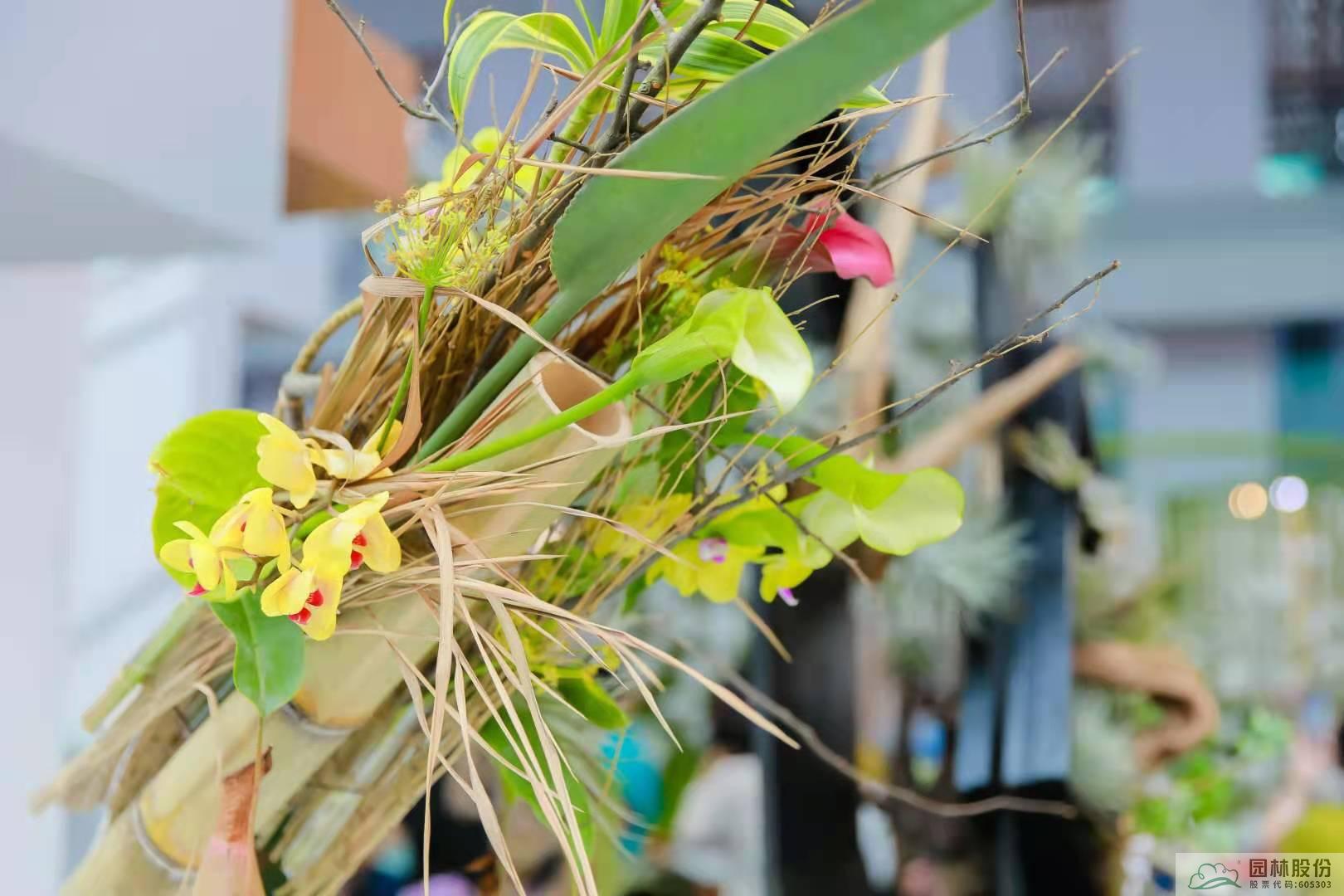 館內(nèi)用大量的白色蝴蝶蘭花朵和仿竹構(gòu)筑物打造的立體景觀,在展示浙江竹產(chǎn)業(yè)發(fā)展的同時,更展現(xiàn)了“綠水青山就是金山銀山”理念在浙江的生動實踐。