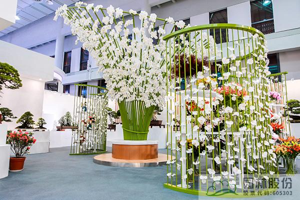 走進(jìn)館內(nèi),各種浙江特色新優(yōu)園林園藝植物產(chǎn)品、花藝作品、盆景作品等,讓人忍不住駐足停留。最引人注目的,則是以一朵朵白色的蝴蝶蘭花朵與仿竹構(gòu)筑物營(yíng)造的立體景觀,結(jié)合蒼翠欲滴的竹林背景和浙派山水盆景,營(yíng)造出綠意盎然、生機(jī)無(wú)限的風(fēng)景畫卷。寓意浙江是“綠水青山就是金山銀山”理論的發(fā)源地,表現(xiàn)浙江始終踐行“綠水青山就是金山銀山”的理念、大力推進(jìn)生態(tài)文明建設(shè)取得的巨大成就。