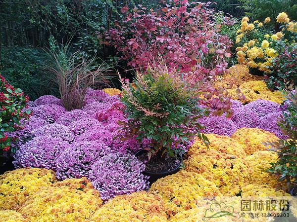 本次花境景觀中的主體雖是菊花,如球菊、蟹爪菊、乒乓菊、芙蓉菊等,但點(diǎn)綴其中的植物優(yōu)良品種,使得整體花境更具獨(dú)特魅力。