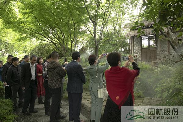 在李壽仁的帶領(lǐng)下,與會(huì)人員首先參觀了畫(huà)境·青山湖花園中心室外景觀展示區(qū)。五月的花園中心,綠意盎然,繁花綻放,鋪展開(kāi)一幅生態(tài)自然、清新怡人的風(fēng)景畫(huà)卷,引來(lái)大家的不斷贊嘆,紛紛直呼“太美了!”“太漂亮了!”