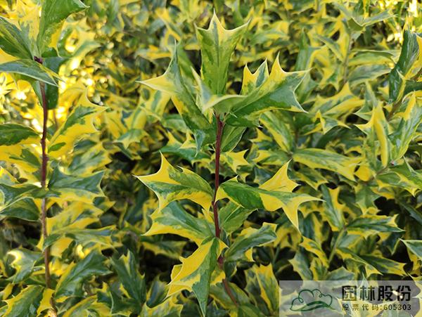 花葉枸骨Ilex cornuta 'O Spring':它的母本是我國(guó)最為常見的的枸骨,經(jīng)常在溝壑、丘陵和山路旁發(fā)現(xiàn)其存在。由俄克拉荷馬州的一名苗圃工人Otto Spring發(fā)現(xiàn)的變異。常綠灌木或小喬木,屬于雄性植株。葉厚革質(zhì),有光澤,葉形呈四角狀長(zhǎng)圓形,葉緣常反曲,在春季,葉緣呈現(xiàn)黃油色調(diào),到了秋冬季則會(huì)變成金黃色,莖稈也會(huì)變成紫色。適合種植在庭院、公園、街道等地方,可以作為綠籬植物使用,也可以修剪成小樹的形狀。對(duì)土壤適應(yīng)性較強(qiáng),幾乎可以在任何土壤中生長(zhǎng),而且具有耐干旱和高溫的特性。因此,它是一種簡(jiǎn)單耐用的冬青品種。