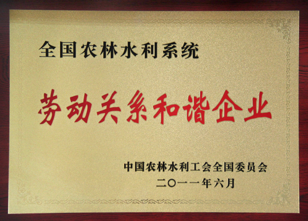 公司榮獲“全國農(nóng)林水利系統(tǒng)勞動(dòng)關(guān)系和諧企業(yè)”稱號(hào)