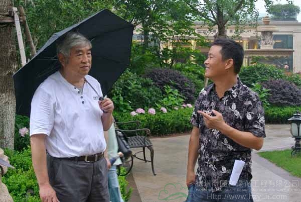 中國風(fēng)景園林學(xué)會園林工程分會秘書長商自福(左)在現(xiàn)場進(jìn)行考察