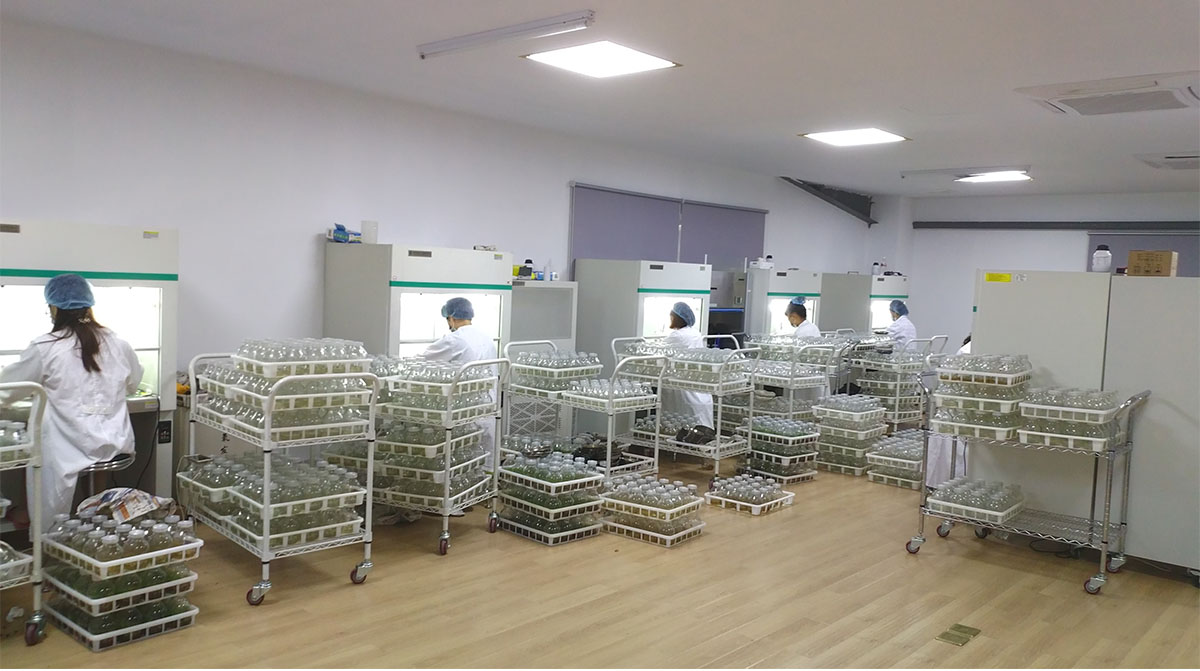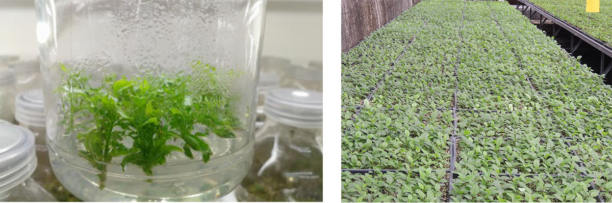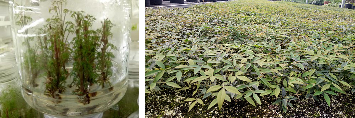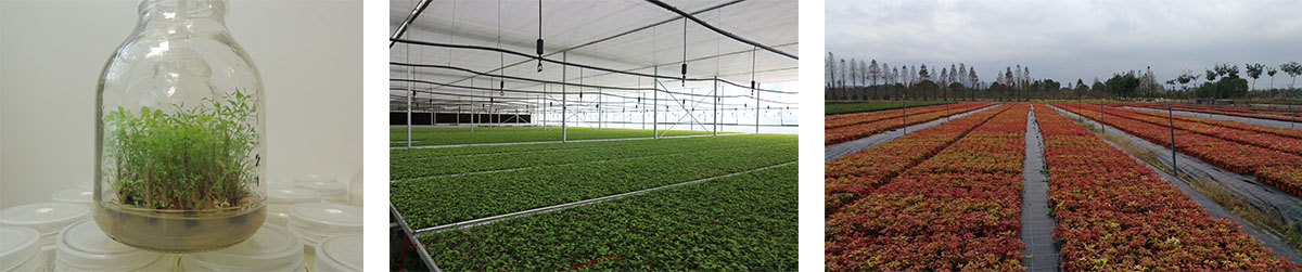 研發(fā)中心擁有1200㎡組培研發(fā)及生產(chǎn)車間,年產(chǎn)組培種苗500萬株。經(jīng)過多年的研發(fā),建立了南天竹屬、冬青屬、礬根屬、紫金牛屬、繡球?qū)佟褜俚榷喾N植物組培快繁技術(shù)體系,在木本植物組培快繁技術(shù)方面處于國內(nèi)領(lǐng)先水平。