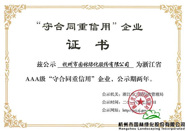 浙江省AAA級“守合同重信用”企業(yè)