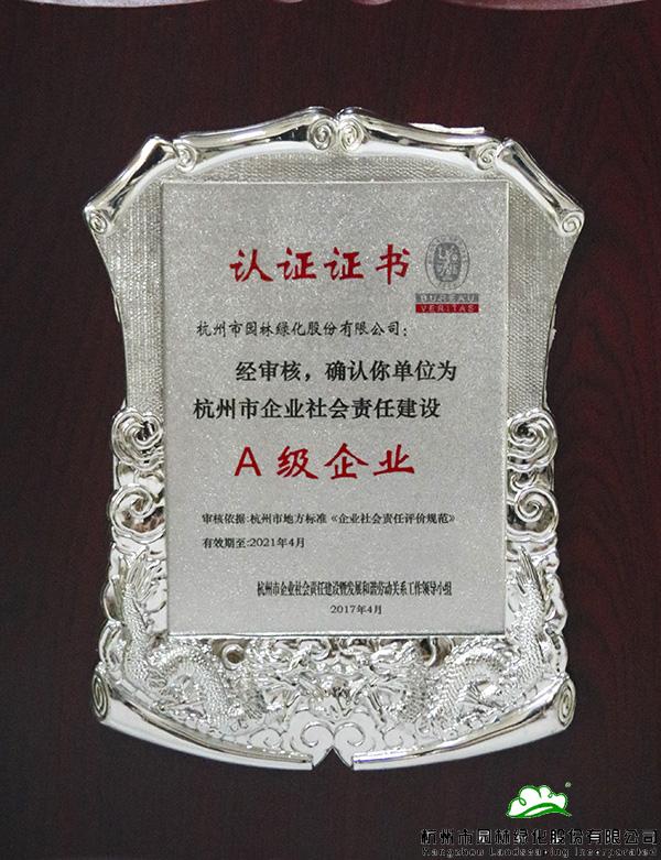 杭州市企業(yè)社會責(zé)任建設(shè)A級企業(yè)