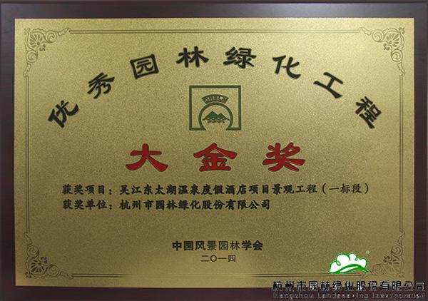 “中國風(fēng)景園林學(xué)會‘優(yōu)秀園林綠化工程’大金獎”
